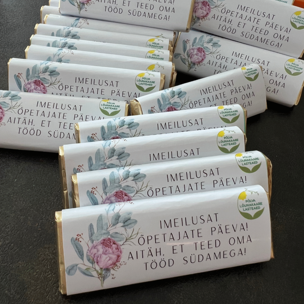 Koolid (nt kruusid, järjehoidjad), šokolaadid õpetajatele;