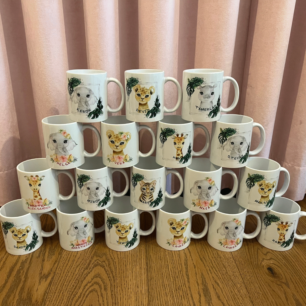 Lasteaedade ja lastehoidude rühmad (nt joogipudelid, plekk-kruusid, topsid, šokolaadid kingituseks õpetajatele jpm);