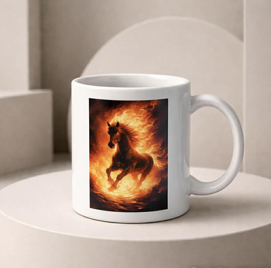 Tulihobuse kruus on kahelt poolt sama tulihobuse pildiga ning soovikorral lisame ka nime.